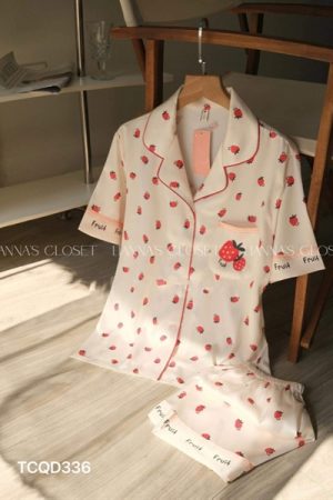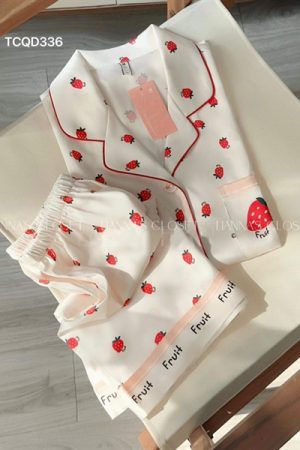 Set lụa đùi dâu đỏ nền trắng