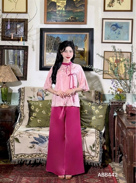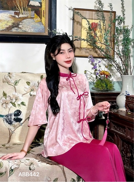 áo bà ba tơ Hồng thắt nơ