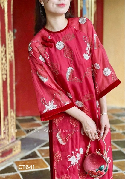 Be the first to review “áo dài đỏ tơ thêu hoa phối viền nhung” Hủy