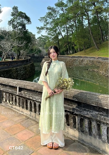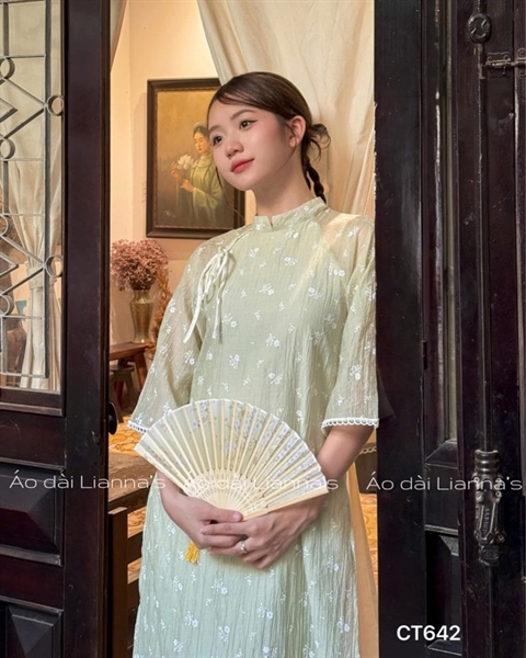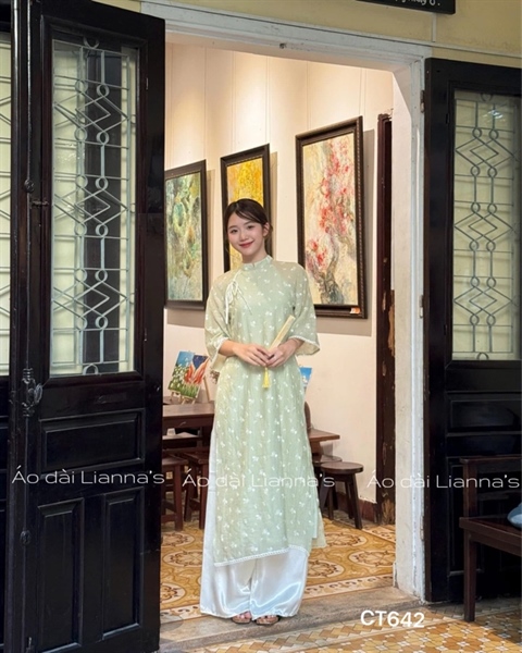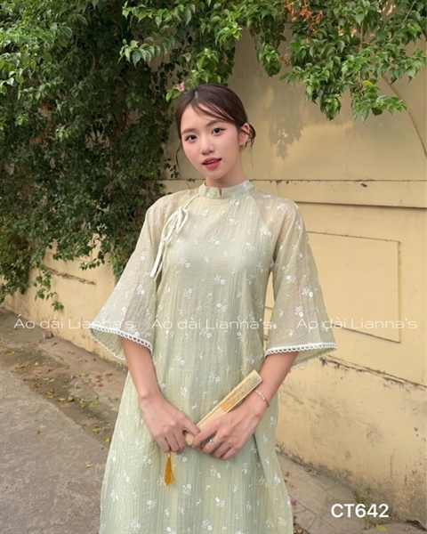 áo dài hoa nhí trắng xanh cốm