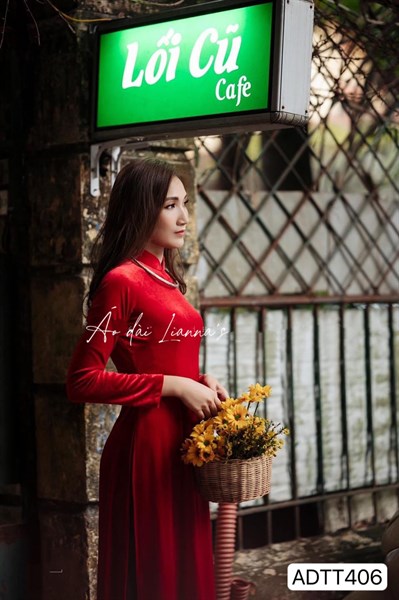 Áo dài nhung đỏ