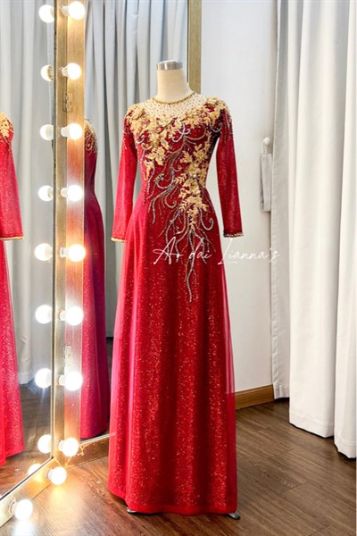 Áo dài cưới – ao dai ba sui – được đặt may theo số đo.