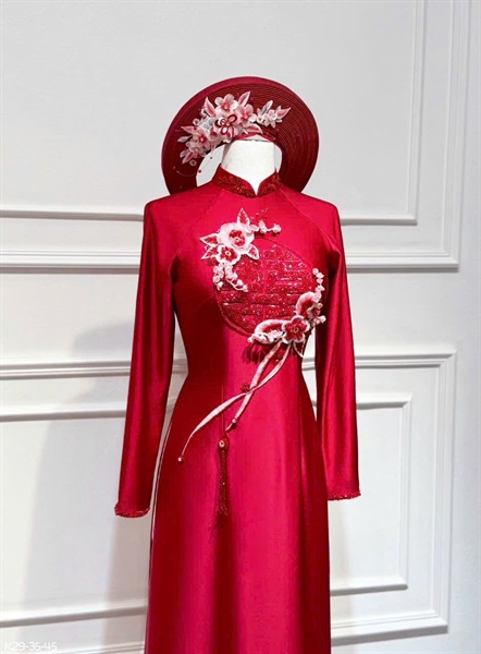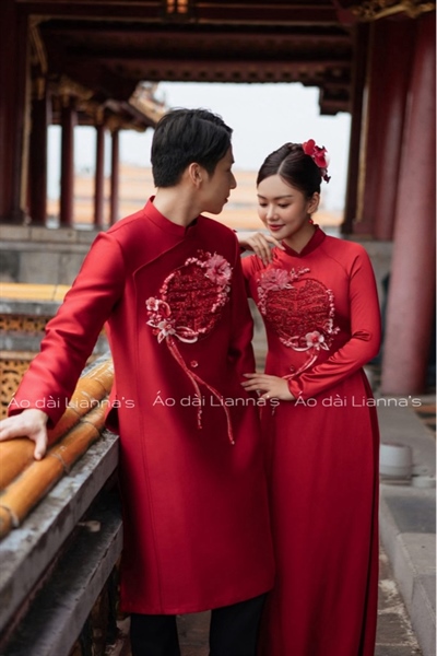 Cặp áo dài cưới đỏ thệ kết cao cấp