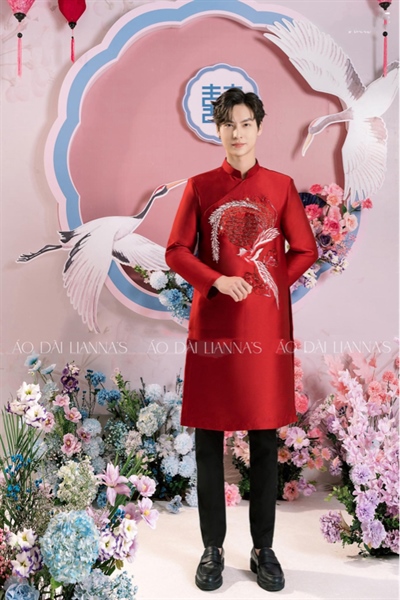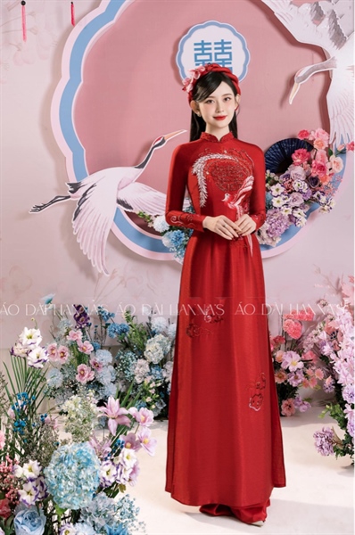 Cặp áo dai cưới đỏ thêu đính kết cao cấp