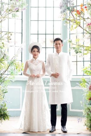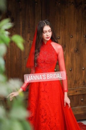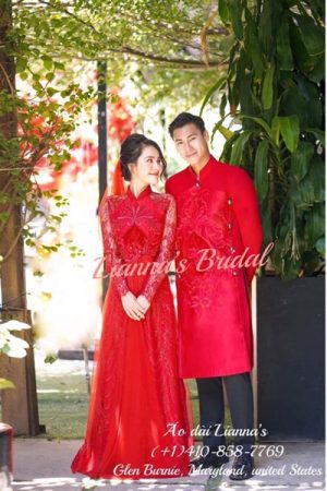 Cặp áo dài cưới thiế kế đỏ burgundy