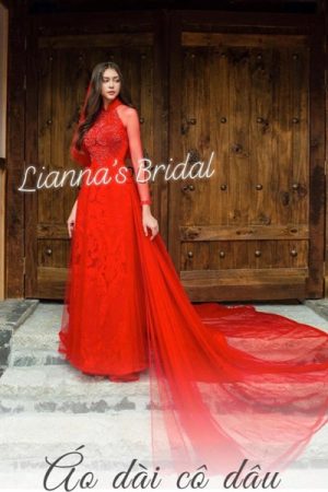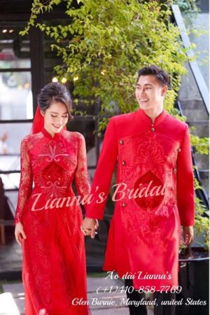 Cặp áo dài cưới thiế kế đỏ burgundy